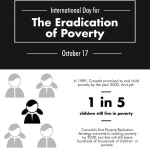 Campaign 2000 marks the International Day for the Eradication of Poverty on October 17, and we recall the federal government’s promise in 1989 to end child poverty by the year 2000. Canada has since reaffirmed this promise twice, but most recently released its Poverty Reduction Strategy that aims only to halve poverty by 2030. These moving goalposts… Continue reading Marking Int’l Day for Eradication of Poverty